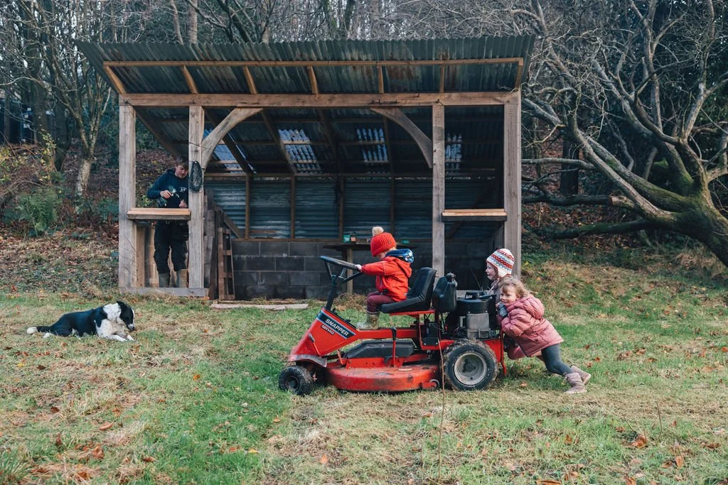 Jonny has a habit of deciding to start/finish jobs last minute. And true to form, he decided to start fitting the glass in our field shelter (that he’d built 3 years ago) the afternoon before the party. Of course the kids wanted to help so he screwed some off-cuts of timber to a fallen tree to make hand and foot holds for a climbing tree. Unfortunately Eden took a tumble and broke her wrist, but a quick trip to Kendal UTC (in and out within an hour), and she was right as rain.